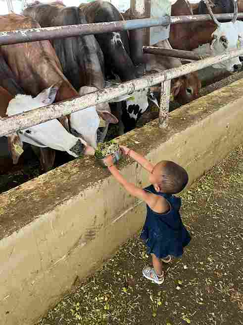 3 साल की क्रिशिका गौशाला पहुंच गौ माता को खिला रही खाना