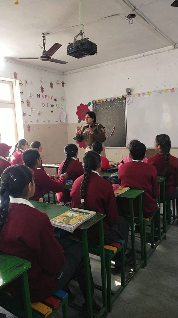 महिला निरीक्षक राजेश लता ने बताया की पुलिस द्वारा महिलाओं की सुरक्षा के लिए दुर्गा शक्ति ऐप भी लांच किया हुआ है। महिलाओं और छात्राओं को यह ऐप अपने मोबाइल फोन में प्ले स्टोर से डाउनलोड करना चाहिए। ऐप डाउनलोड करने के बाद एक बटन दबाने से ही पीड़ित महिला को तुरंत पुलिस सहायता प्राप्त होगी। यदि कोई असामाजिक तत्व किसी महिला या छात्रा को परेशान करेगा, तो दुर्गा शक्ति टीम मौके पर पंहुचकर ऐसे मनचले व शरारती तत्वों पर कार्यवाही करके सबक सिखाएगी। इस मौके पर पुलिस टीम से महिला निरीक्षक राजेश लता, उपनिरीक्षक बबीता, स्कूल स्टाफ और छात्राएं मौजूद रही।