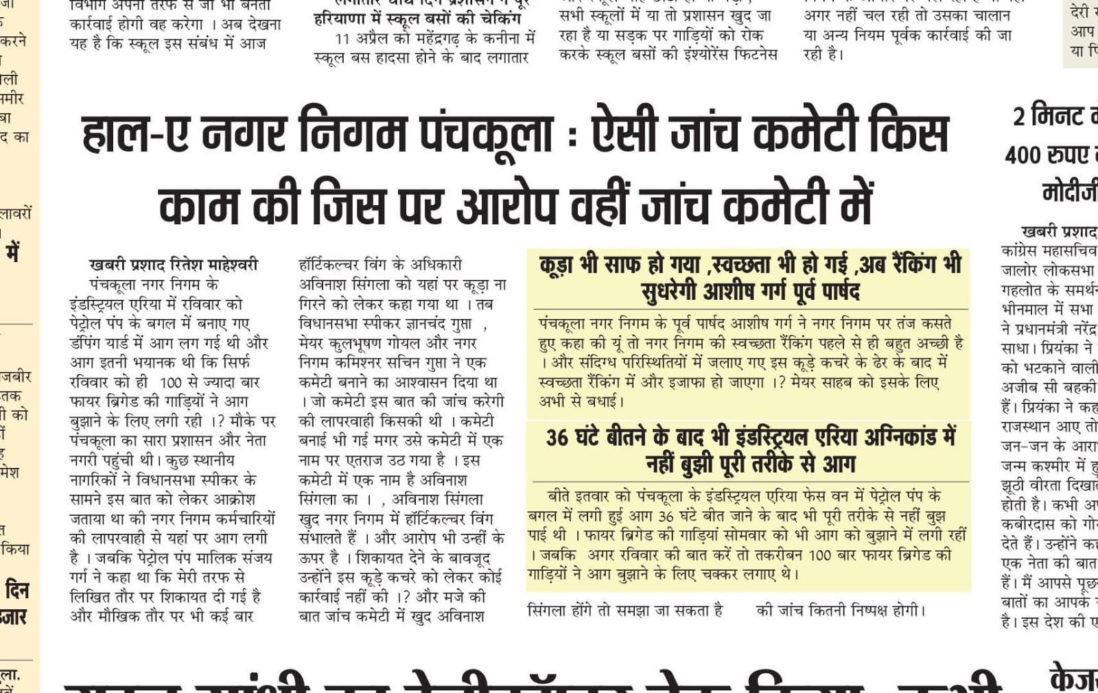 पंचकूला नगर निगम के पूर्व पार्षद आशीष गर्ग ने नगर निगम पर तंज कसते हुए कहा की यूं तो नगर निगम की स्वच्छता रैंकिंग पहले से ही बहुत अच्छी है । और संदिग्ध परिस्थितियों में जलाए गए इस कूड़े कचरे के ढेर के बाद में स्वच्छता रैंकिंग में और इजाफा हो जाएगा । मेयर साहब को इसके लिए अभी से बधाई ।