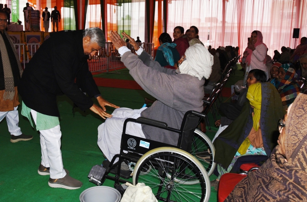 कृषि मंत्री जेपी दलाल ने कहा कि मोदी सरकार ने दिव्यांग जनों एवं वरिष्ठजनों के सम्मान और उनके जीवन को बेहतर बनाने के लिए अनेक कदम उठाए हैं। कंपनियों पर कानून लागू किया गया है कि आमदनी का दो प्रतिशत सामाजिक कार्यों में लगाएं और आज उसी का नतीजा है कि गांव-गांव जाकर एक-एक जरूरतमंद व्यक्ति को ढूंढ कर जरूरत के हिसाब से उपकरण तैयार करवाकर मदद पहुंचाई जा रही है। सरकार दिव्यांगजन एवं वरिष्ठ जनों को पूजनीय मानती है और इसके लिए सरकारी नौकरियों में तीन प्रतिशत कोटा निर्धारित किया गया है और आज उसके अच्छे परिणाम सामने आ रहे हैं। उन्होंने कहा कि प्रकृति ने किसी व्यक्ति के अंदर कुछ कमियां दे दी हैं उसको हम भगवान मानकर उसकी सेवा करने का काम करते हैं। एक सभ्य समाज का निर्माण करने के लिए सरकार ने अनेक निर्णय लिए हैं। सरकार का निर्णय है कि कमजोर वर्ग को खजाने का लाभ सबसे पहले मिलना चाहिए और आज बिना किसी भेदभाव के इसका लाभ दिया जा रहा है। गरीबों को उनका हक दिया जा रहा है। उन्होंने कहा कि जिस घर में कोई भी सरकारी नौकरी में नहीं है उसको 5 नंबर देने का निर्णय सरकार ने लिया। परिणामस्वरूप ऐसे घरों के युवाओं को सरकारी नौकरी मिल रही है जिनको पहले यह लाभ नहीं मिला था। उन्होंने कहा कि लोकतंत्र में जनता मालिक है और हम सेवक हैं। अब पहले वाली मानसिकता नहीं रही। सरकार ने व्यवस्था परिवर्तन करने का काम किया है और उसी का नतीजा है कि गरीबों का आशीर्वाद मोदी जी को मिल रहा है।