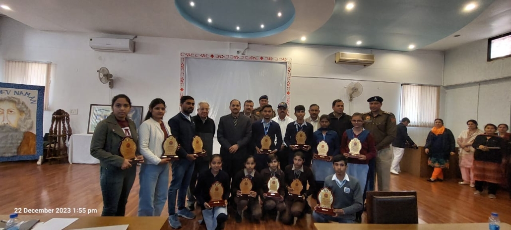 इस अवसर पर करनाल रेंज महानिरीक्षक श्री सतेन्द्र कुमार गुप्ता, आई.पी.एस. द्वारा विजयी टीमों के प्रतिभागियों को मोमैंटो तथा प्रशस्ति पत्र प्रदान किए गए। भाग लेने वाले प्रतिभागियों का उत्साहवर्धन करते हुए उन्होंने इस रोड सेफ्टी क्विज प्रतियोगिता में भाग लेने के लिए बधाई दी तथा ट्रैफिक नियमों का पालन करने के लिए प्रेरित किया।